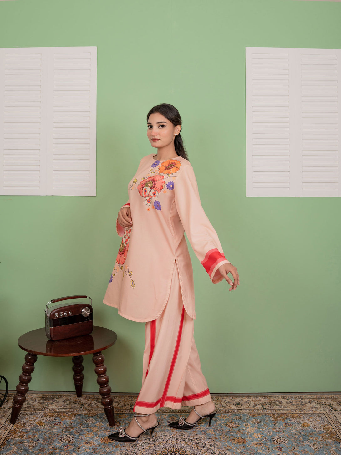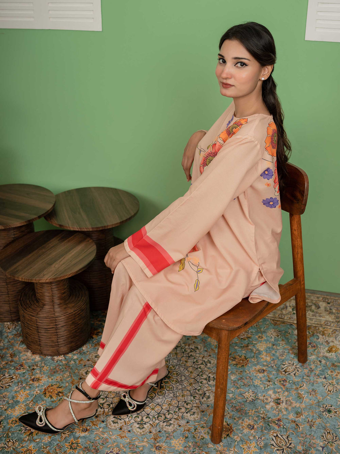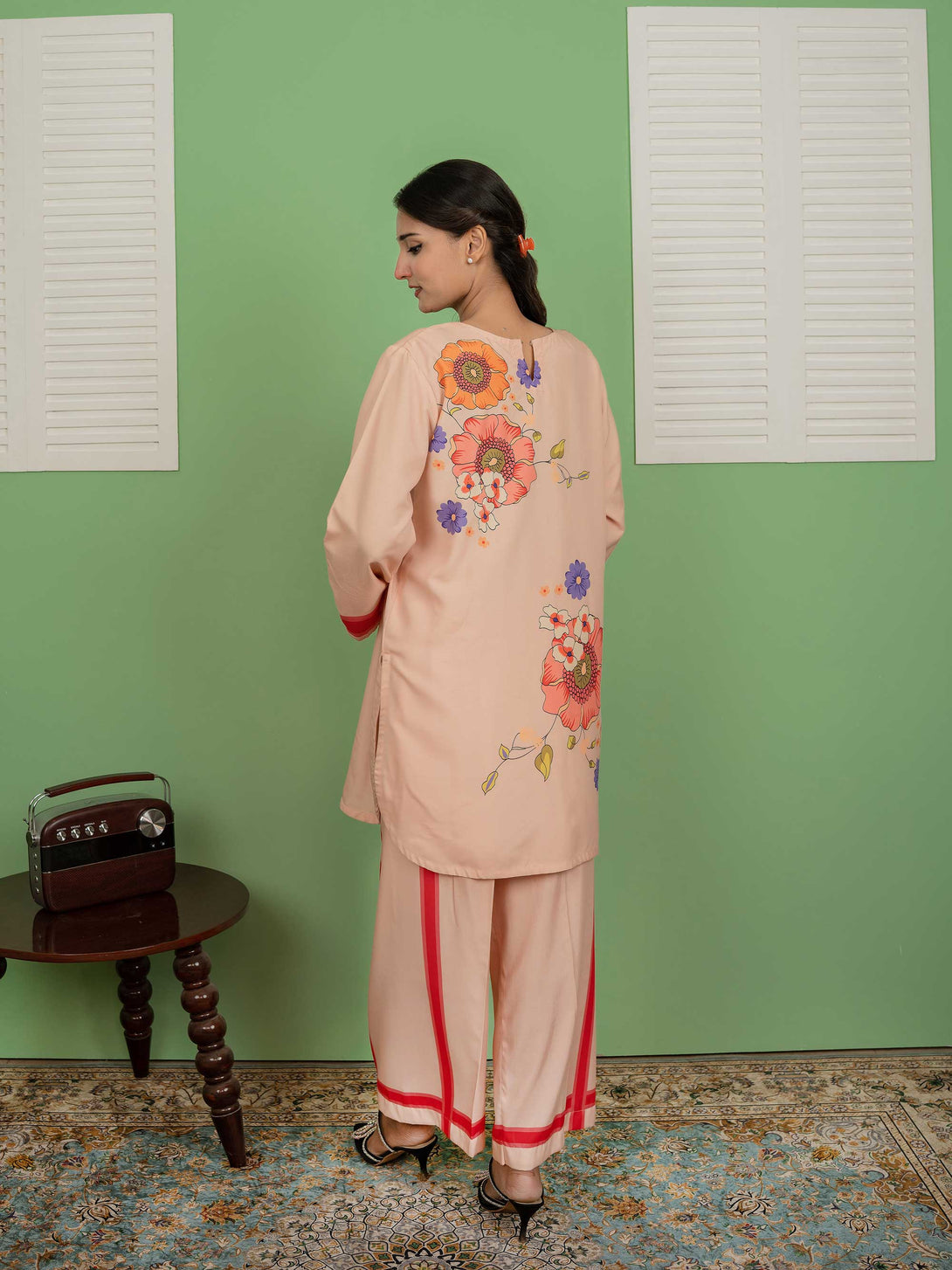 Blush is a delicate pink co-ord set in lightweight lawn silk, designed for subtle sophistication.