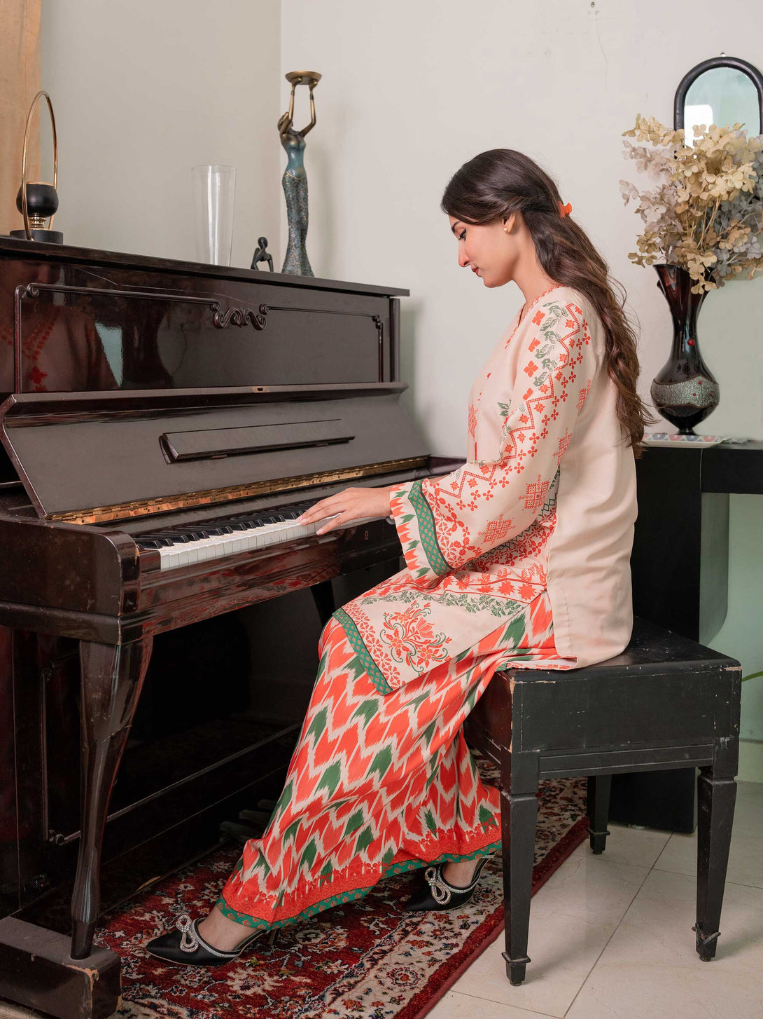 Noor brings light and grace in an off-white lawn silk co-ord set.